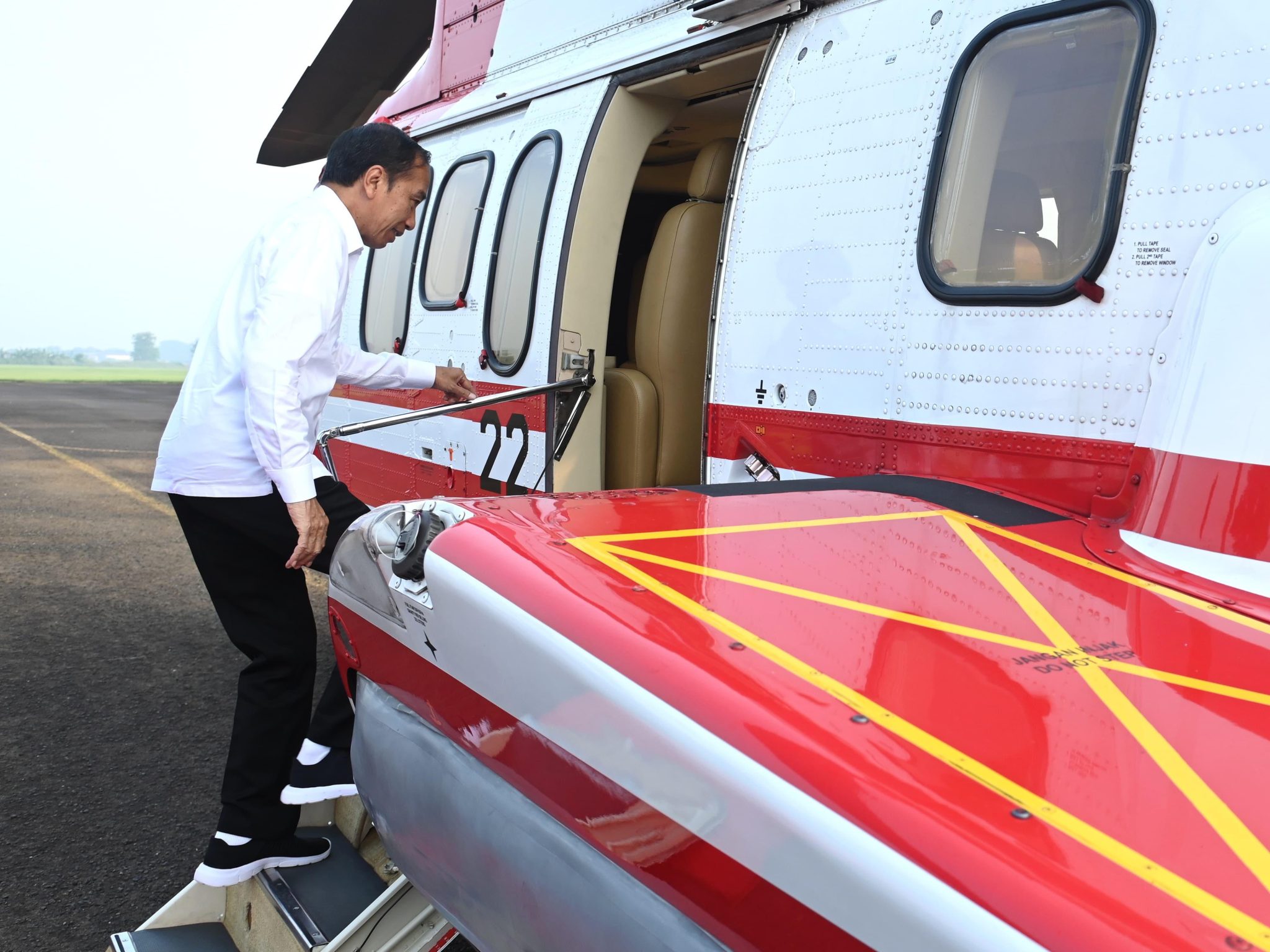 Melalui Pangkalan TNI AU Atang Sendjaja, Kabupaten Bogor, Kepala Negara lepas landas dengan menggunakan helikopter Super Puma TNI AU, sekitar pukul 07.20 WIB.