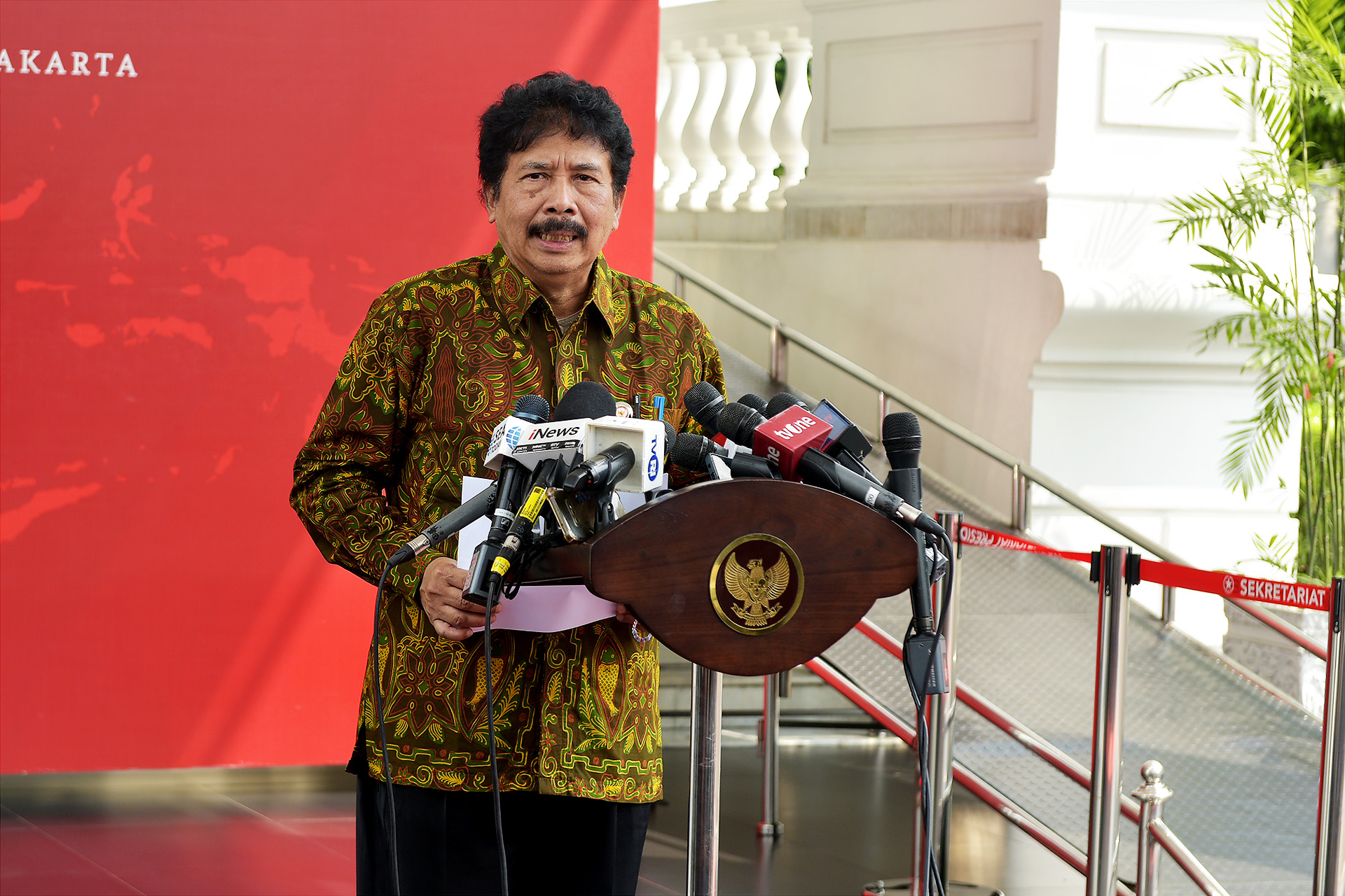 Kepala BPIP, Prof. Drs. K.H. Yudian Wahyudi, M.A., Ph.D menyampaikan keterangan pers setelah mengikuti Rapat Kabinet Terbatas terkait Persiapan Upacara Peringatan HUT ke-79 Kemerdekaan RI di Istana Merdeka-Jakarta, Senin, 10 Juni 2024. (Foto: Humas Setkab/Seno)