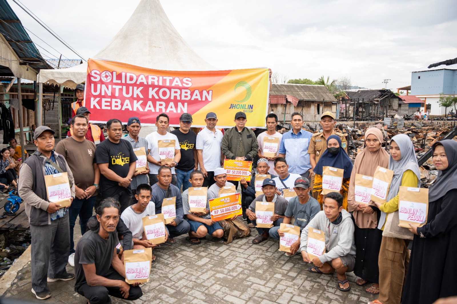 Sebelumnya, Jhonlin Group juga telah memberikan bantuan berupa sembako, dan perlengkapan hidup sehari-hari untuk warga korban bencana kebakaran.