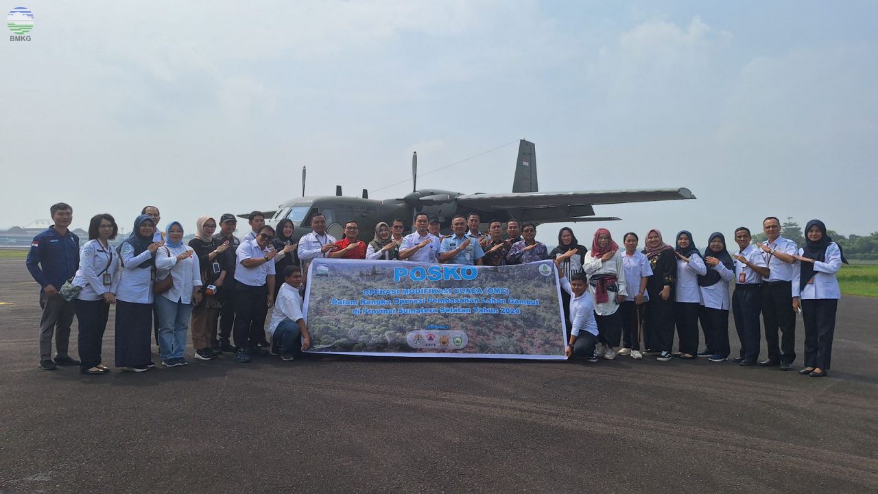 Kegiatan OMC Sumatra Selatan didukung 1 unit pesawat CASA TNI AU A-2104 oleh kru penerbang Skadron 4 TNI AU. Kegiatan ini difokuskan untuk melakukan penyemaian awan pada wilayah-wilayah dengan tutupan lahan gambut di Provinsi Sumatera Selatan, khususnya wilayah konservasi lahan gambut.