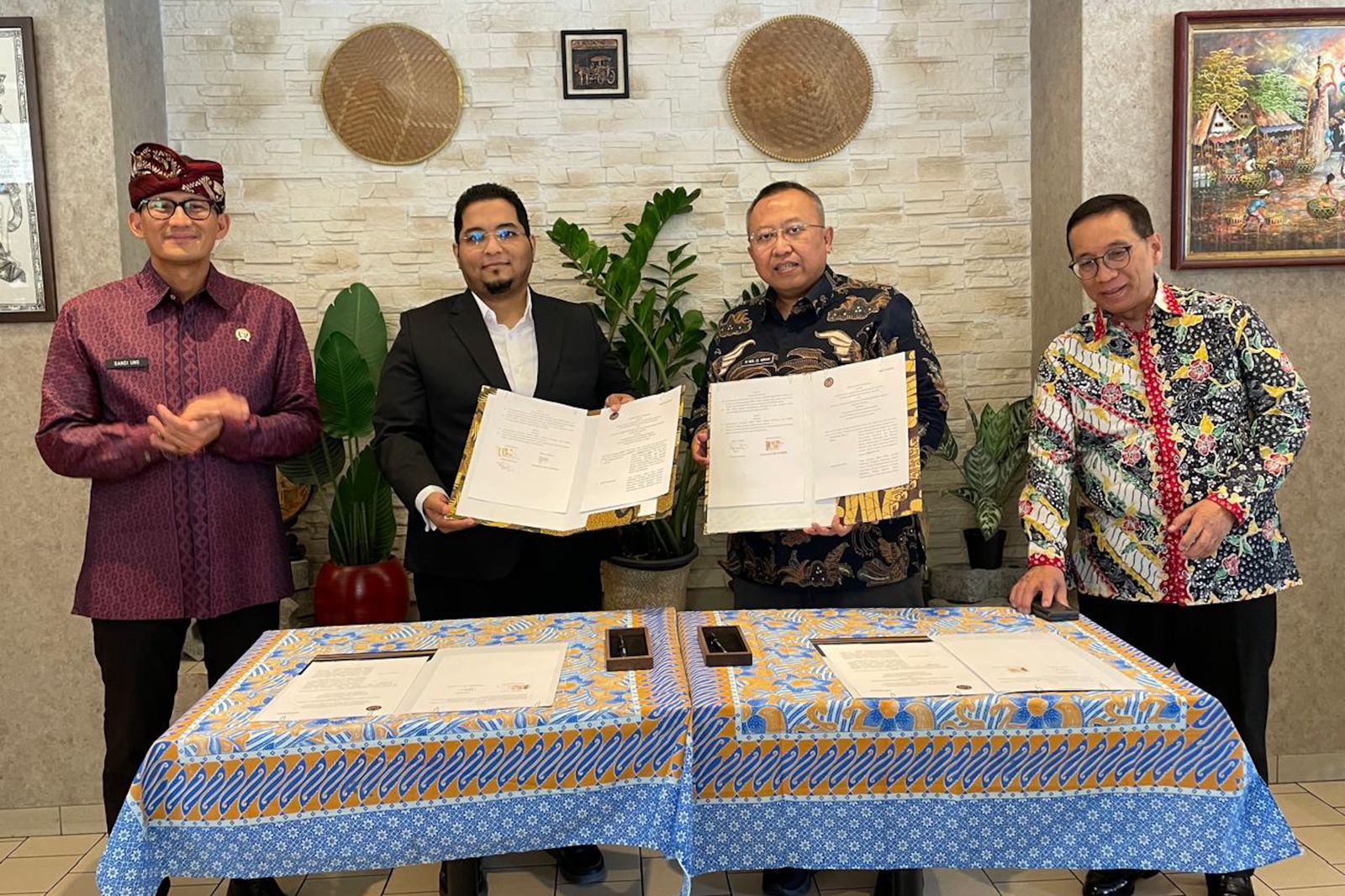 Acara penandatanganan turut disaksikan oleh Menteri Pariwisata dan Ekonomi Kreatif/Kepala Badan Pariwisata dan Ekonomi Kreatif (Menparekraf/Kabaparekraf), Sandiaga Salahuddin Uno.
