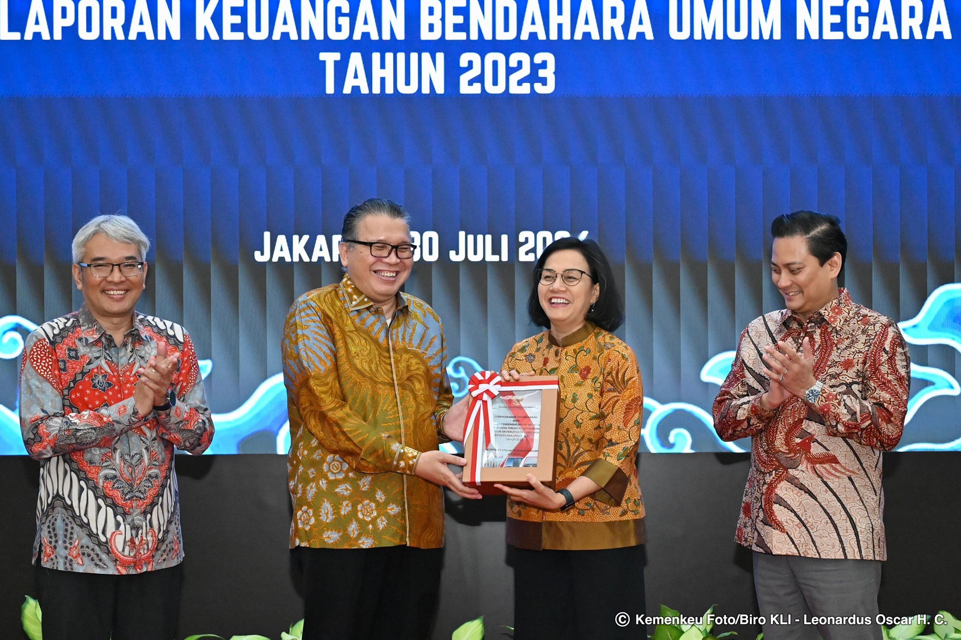 INDONESIAUPDATE.ID – Menteri Keuangan Sri Mulyani didampingi Wakil Menteri Keuangan II Thomas Djiwandono hari ini menerima penyerahan Laporan Hasil Pemeriksaan BPK RI atas Laporan Keuangan Kementerian Keuangan (BA 015) dan Laporan Keuangan Bendahara Umum Negara untuk Tahun Anggaran 2023. Kedua laporan keuangan tersebut kembali meraih predikat opini Wajar Tanpa Pengecualian (WTP).