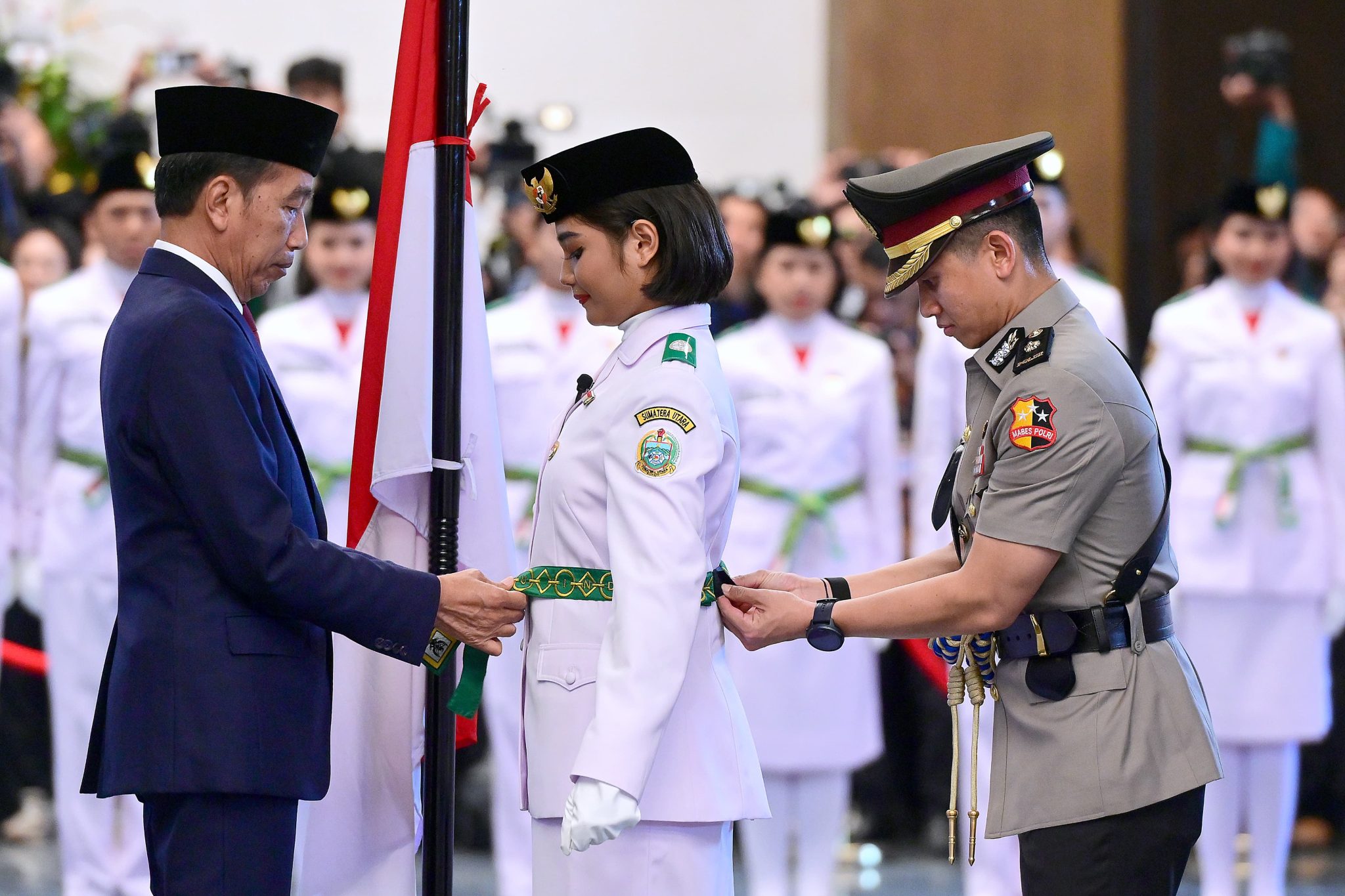 INDONESIAUPDATE.ID – Presiden RI Joko Widodo (Jokowi) mengukuhkan sebanyak 76 putra-putri Indonesia dari 38 provinsi menjadi pasukan pengibar bendera pusaka (paskibraka) yang akan bertugas pada HUT ke-79 RI tanggal 17 Agustus 2024 di Istana Negara, Ibu Kota Nusantara, Provinsi Kalimantan Timur. Upacara pengukuhan digelar di Istana Garuda, Selasa (13/08/2024).