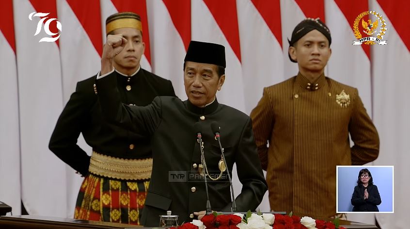 Hal ini disampaikan oleh Presiden RI Joko Widodo dalam pidatonya pada Sidang Tahunan MPR RI dan Sidang Bersama DPR RI dan DPD RI dalam rangka HUT Ke-79 Proklamasi Kemerdekaan RI, di Ruang Rapat Paripurna, Gedung Nusantara MPR/DPR/DPD RI, Senayan, Jakarta, Jumat (16/08/2024) pagi.