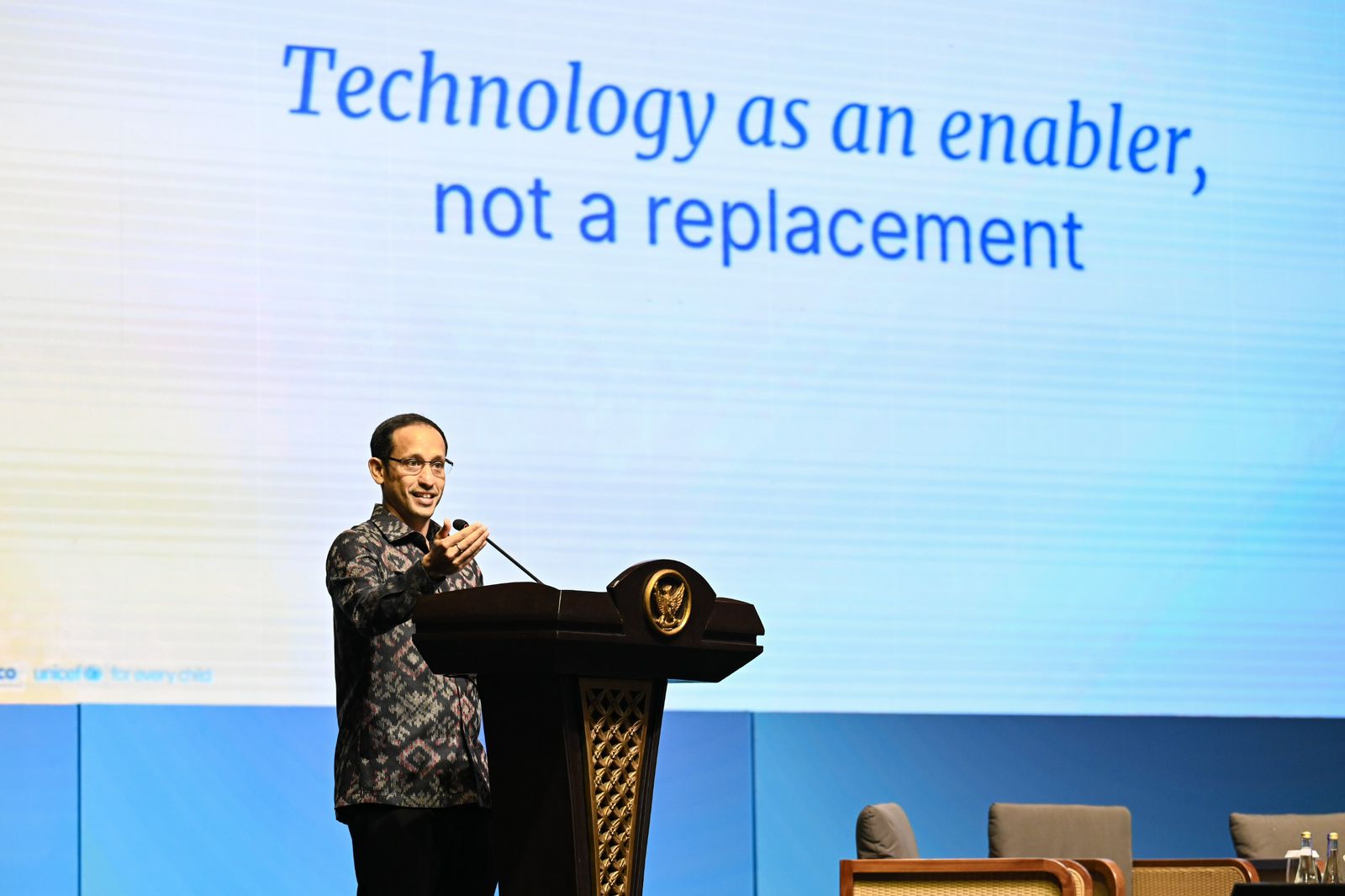 “Dalam lima tahun terakhir, Indonesia telah melakukan transformasi besar dalam sistem pendidikan. Kami menggunakan teknologi sebagai penyeimbang sistem pendidikan, guna mendorong potensi para penggerak pendidikan seperti guru, kepala sekolah, dan kepala dinas (pendidikan) sehingga dapat berkolaborasi dan meningkatkan kualitas layanan pendidikan kepada murid,” urai Mendikbudristek.