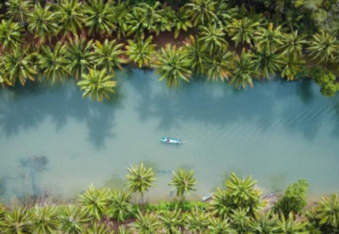 Sepanjang perjalanan susur sungai yang memiliki kedalaman rata-rata 20 meter itu, ada aneka pepohonan termasuk mangrove yang dapat disaksikan dengan batang serta daun menjulur bebas ke tepian sungai. Semakin ke hilir yaitu Pantai Ngiriboyo yang menghadap Samudra Hindia, kita akan lebih mudah menjumpai ribuan pohon kelapa dengan daun-daun panjang yang melambai tertiup angin seolah menyambut kedatangan peserta susur sungai.