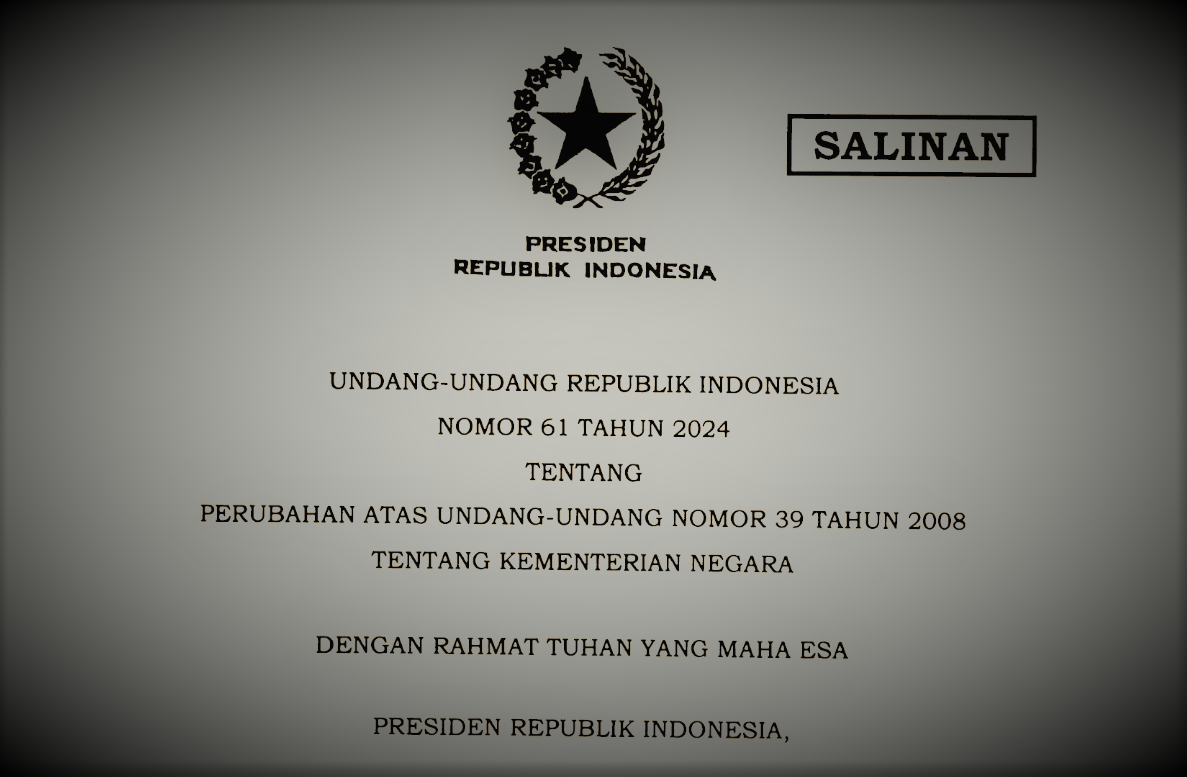 INDONESIAUPDATE.ID – Presiden Joko Widodo (Jokowi) telah mengesahkan Undang-Undang (UU) Nomor 61 Tahun 2024 tentang Kementerian Negara, yang merupakan perubahan atas UU Nomor 39 Tahun 2008 tentang Kementerian Negara. UU ini bertujuan untuk meningkatkan fleksibilitas dalam pembentukan dan pengelolaan kementerian, sejalan dengan kebutuhan pemerintahan yang terus berkembang.