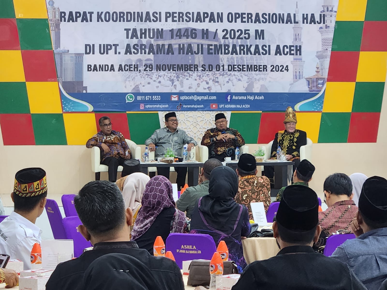 Pesan ini disampaikan Saiful Mujab dalam rangkaian gelaran Rapat Koordinasi Persiapan Haji Tahun 1445H/2025M Operasional Penyelenggaraan 2024 di UPT Asrama Haji Aceh, Provinsi Aceh, Sabtu (30/11/24).