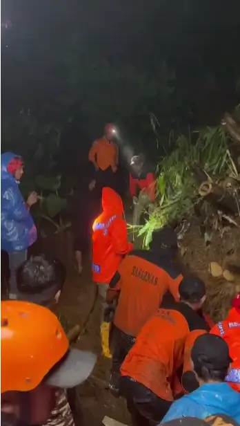 Personil gabungan lakukan evakuasi warga korban longsor di Kabupaten Temanggung pada Senin (17/12). (BPBD Kabupaten Temanggung)