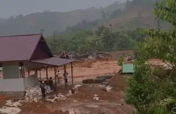 INDONESIAUPDATE.ID – Banjir bandang yang disertai dengan material batang pohon menerjang Kabupaten Morowali Utara, Provinsi Sulawesi Tengah, pada Jumat, (3/1), sekitar pukul 17.45 WITA. Banjir yang terjadi di kawasan Kecamatan Soyo Jaya, tepatnya di Desa Tamainusi, menghanyutkan bangunan atau basecamp milik salah satu perusahaan swasta, yang berlokasi di tepi sungai.