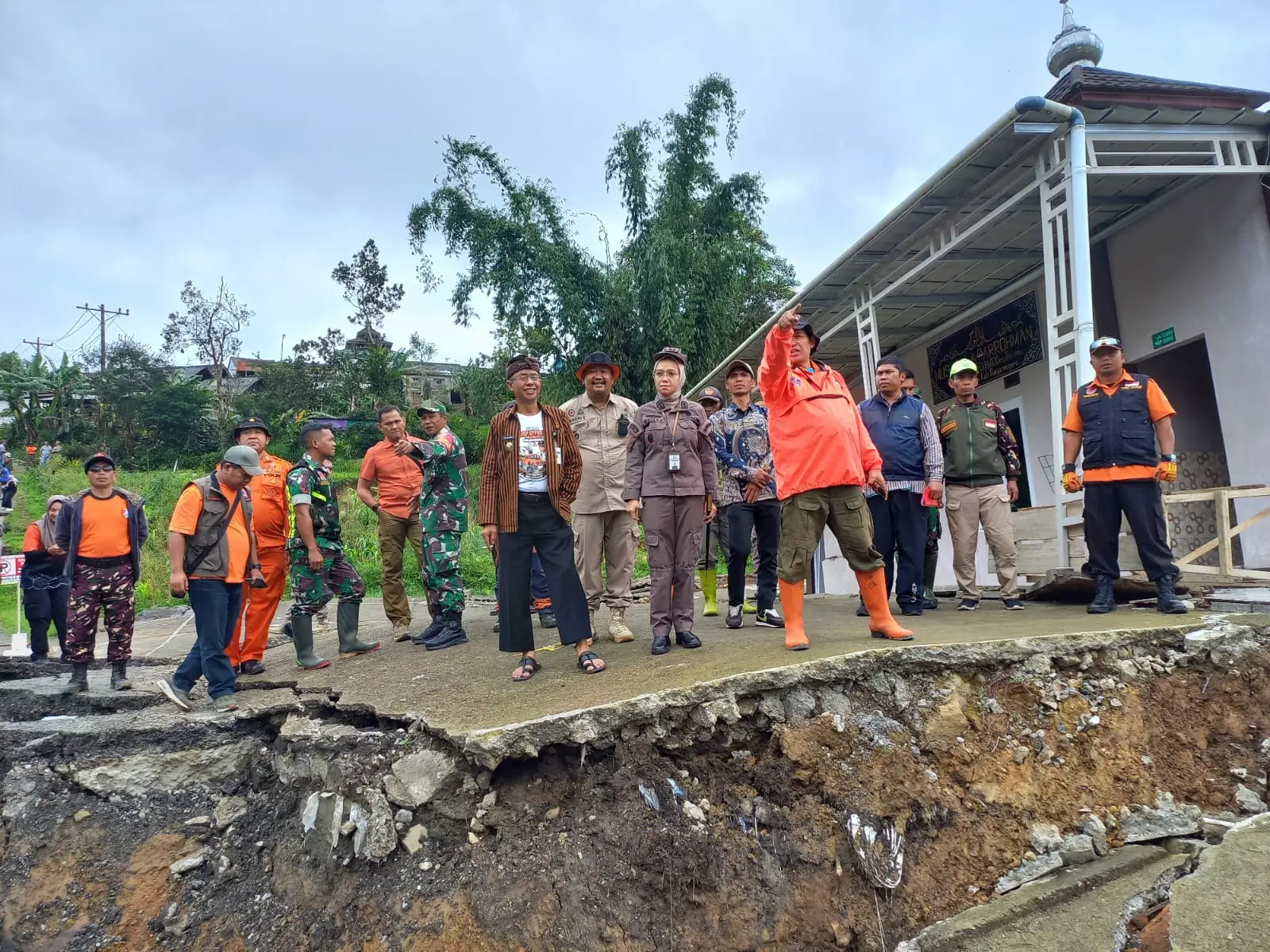 Hasil kaji cepat sementara, terdapat lima titik rekahan dengan kedalaman amblesan sebesar 70 hingga 200 sentimeter. Perkembangan rekahan itu berangsur dari area ketinggian bagian timur menuju lereng ke arah barat.