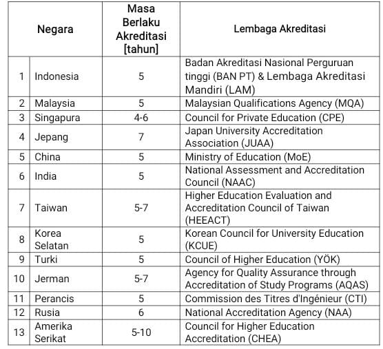 Tabel Perbandingan Masa Berlaku Akreditasi di beberapa negara