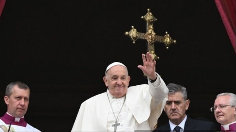Pesan Paus Fransiskus itu dibacakan oleh seorang ajudan. Paus yang masih dalam pemulihan dari pneumonia, menyaksikan di balkon utama Basilika Santo Petrus.