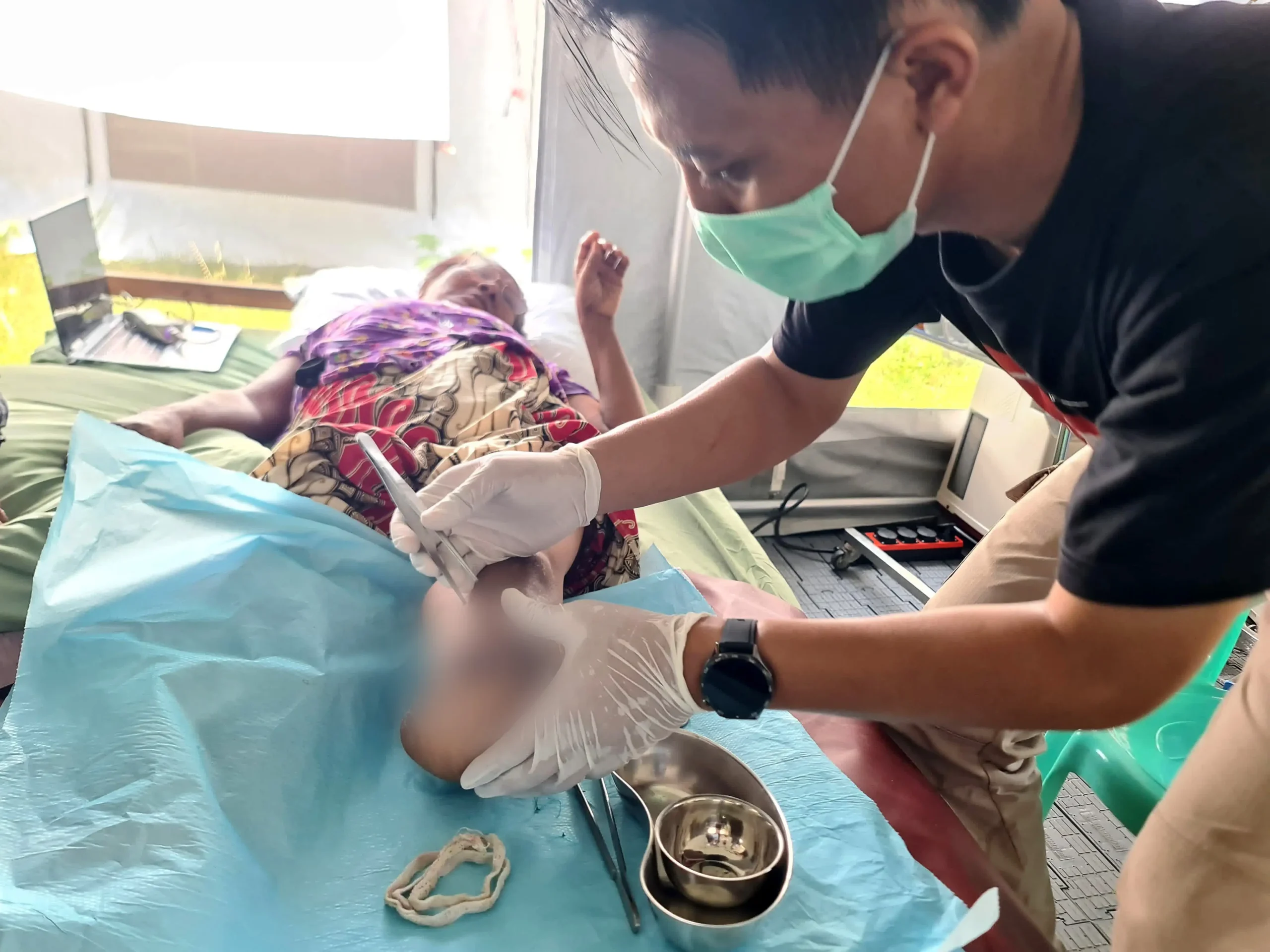 Pasien dengan luka robek, luka tusuk, fraktur dan stroke juga ditangani para dokter Indonesia.