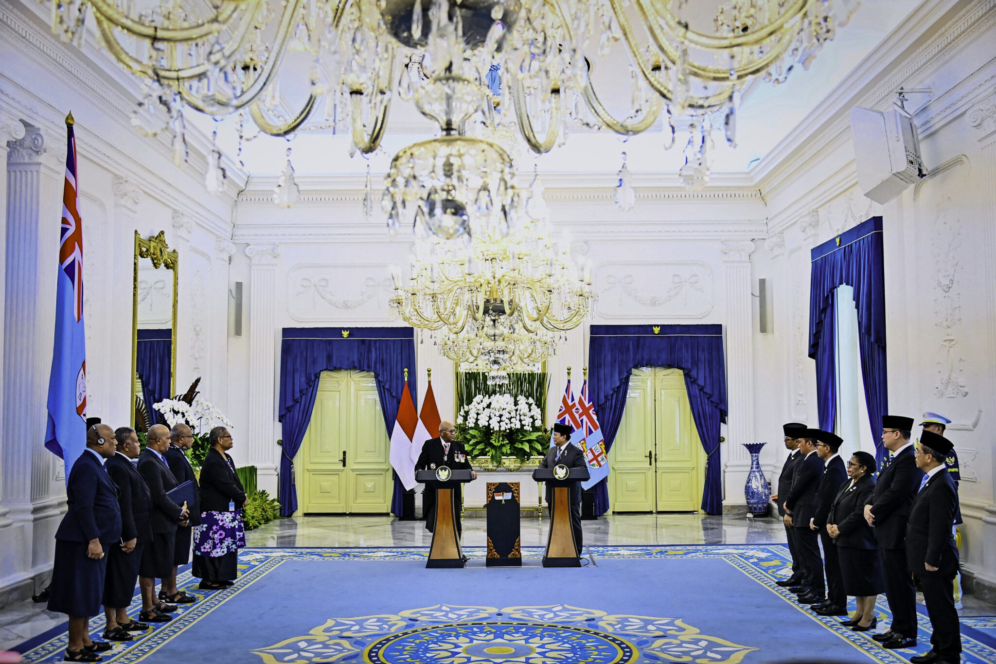 “Atas nama pemerintah Republik Indonesia saya ingin menyampaikan penghargaan kami pemerintah Indonesia atas kepemimpinan Fiji di Pasifik Selatan dan dukungan Fiji terhadap ikut sertanya Indonesia dalam berbagai forum,” ujar Presiden Prabowo.