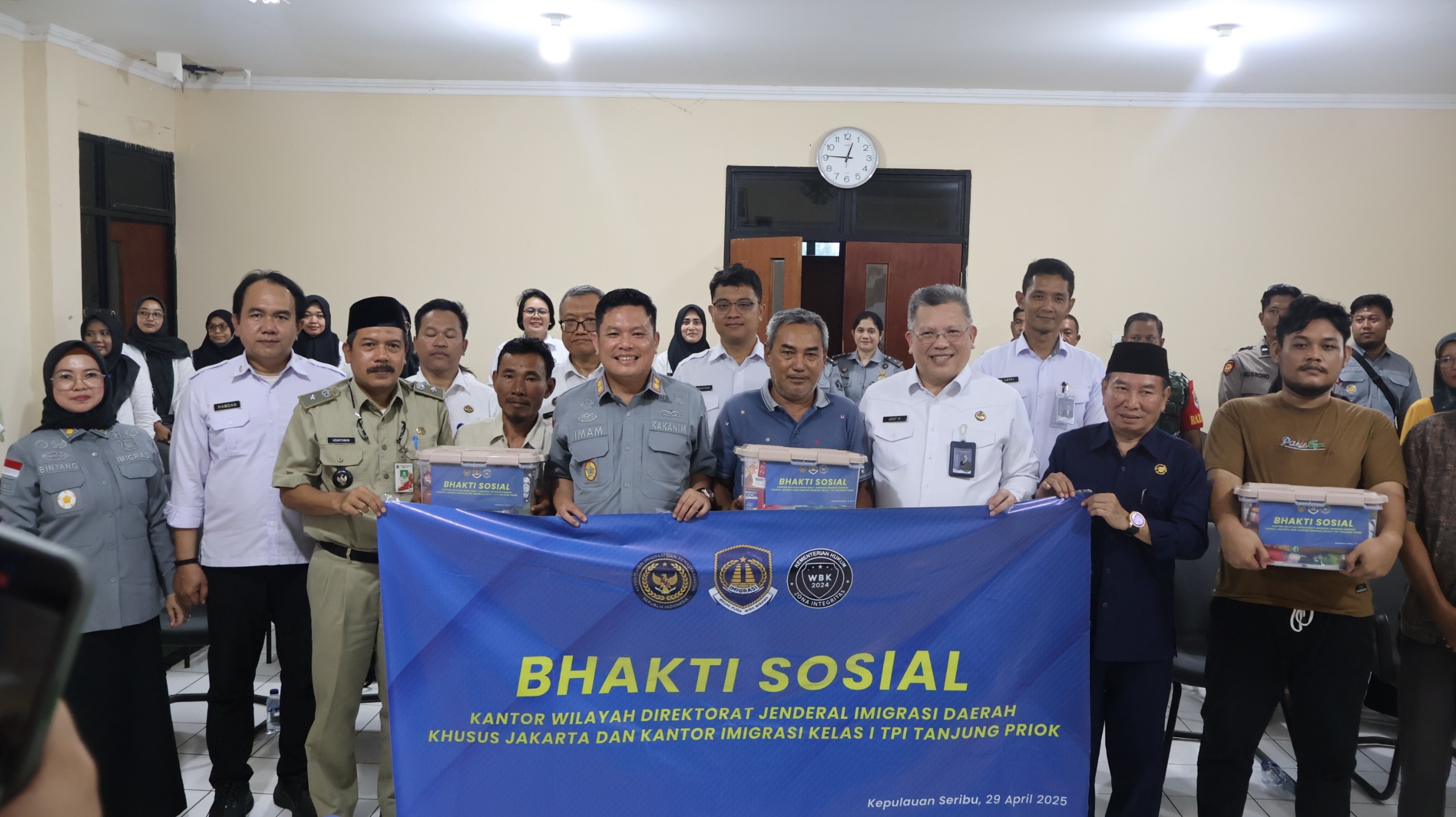 Dalam acara yang sama juga dilaksanakan Bakti Sosial dengan memberikan Bantuan paket Sembako kepada Masyarakat di Kepulauan Untung Jawa disaksikan oleh Kepala Kantor Wilayah Direktorat Jenderal Imigrasi Daerah khusus Jakarta, Arief Munandar
