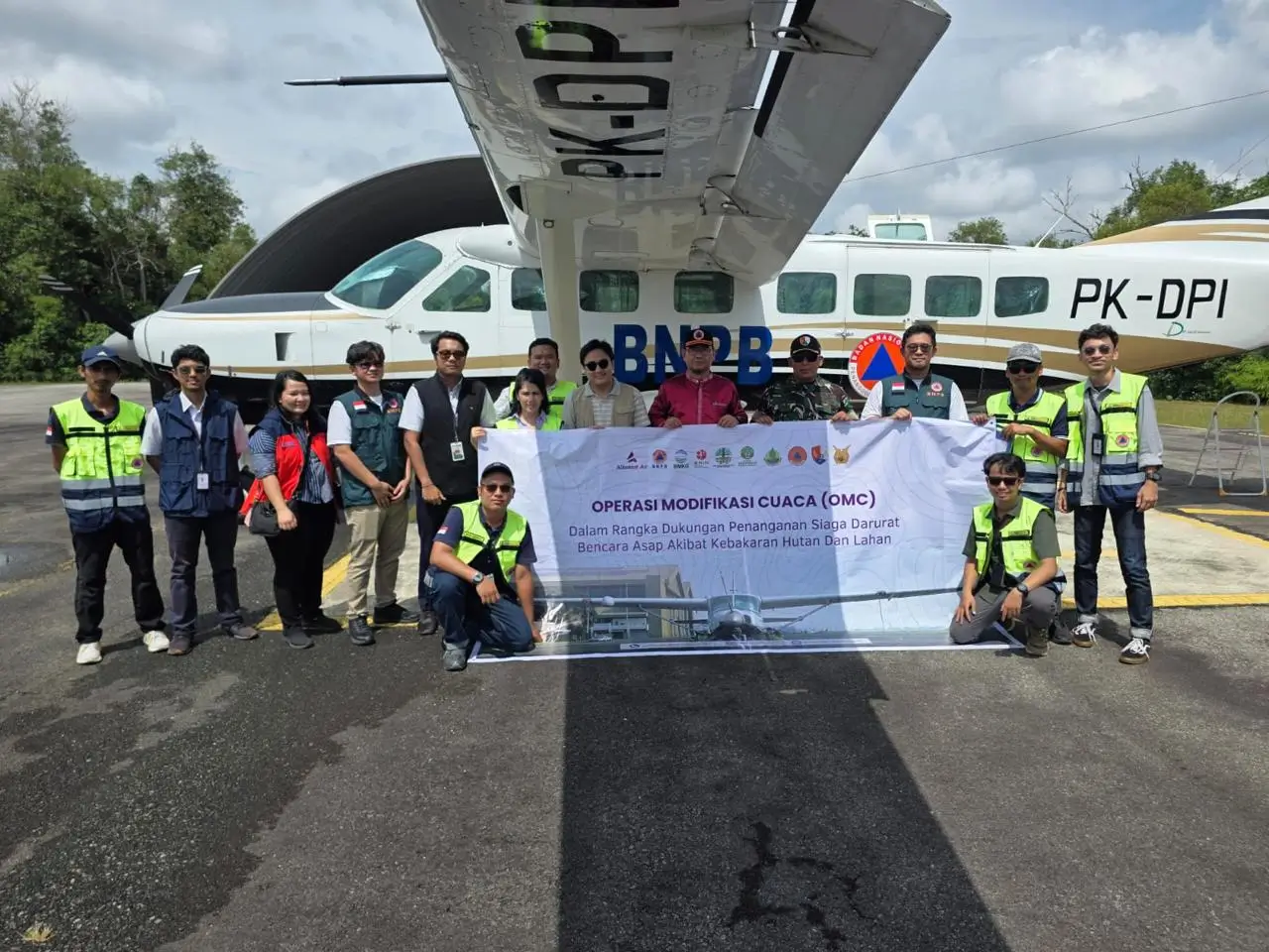 Selama tujuh hari, satu unit pesawat caravan bernomor lambung PK-DPI disiagakan dalam upaya rekayasa cuaca untuk pembasahan lahan gambut dan pengisian embung-embung cadangan air. Total jam realisasi terbang OMC tahap I mencapai 15 jam 12 menit dengan total bahan semai sebanyak 5,6 ton Natrium Klorida (NaCl).