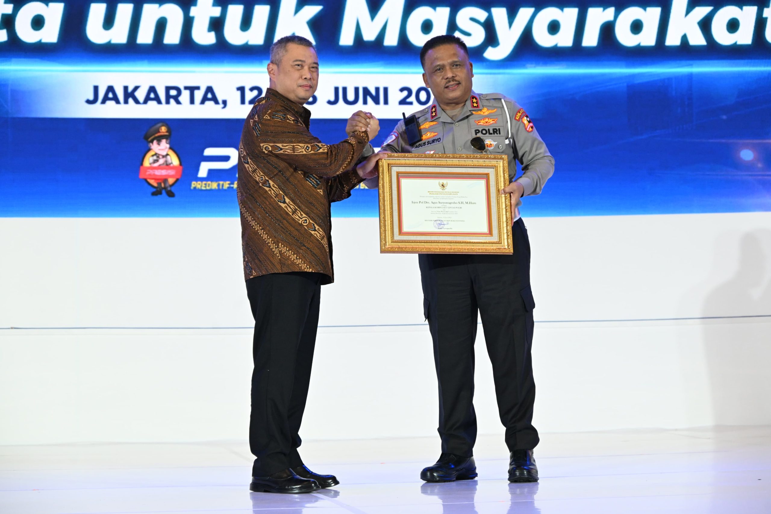 Pada kesempatan yang sama, Menhub juga memberikan penghargaan Kemenhub kepada Kakorlantas Polri Agus Suryonugroho. Menhub memberikan Penghargaan Inovasi One Way Lokal di Jalan Tol selama Periode Angkutan Lebaran 2025 kepada Kakorlantas sebagai wujud apresiasi inovasi yang dilakukan Kakorlantas dalam menjaga arus mudik dan balik Angkutan Lebaran kemarin.