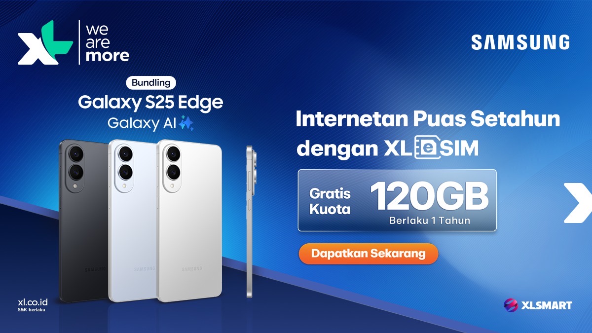 INDONESIAUPDATE.ID – PT XLSMART Telecom Sejahtera Tbk (XLSMART) kembali menghadirkan kenyamanan pelanggan melalui inovasi layanan telekomunikasi yang memadukan teknologi dan perangkat smartphone terbaru. XLSMART menawarkan program eksklusif bundling eSIM dan pengalaman internet terbaik dengan kuota besar hingga 120GB setahun khusus untuk pengguna Samsung Galaxy S25 Edge, dan kuota hingga 60GB khusus untuk pengguna Motorola Edge 60 Fusion.