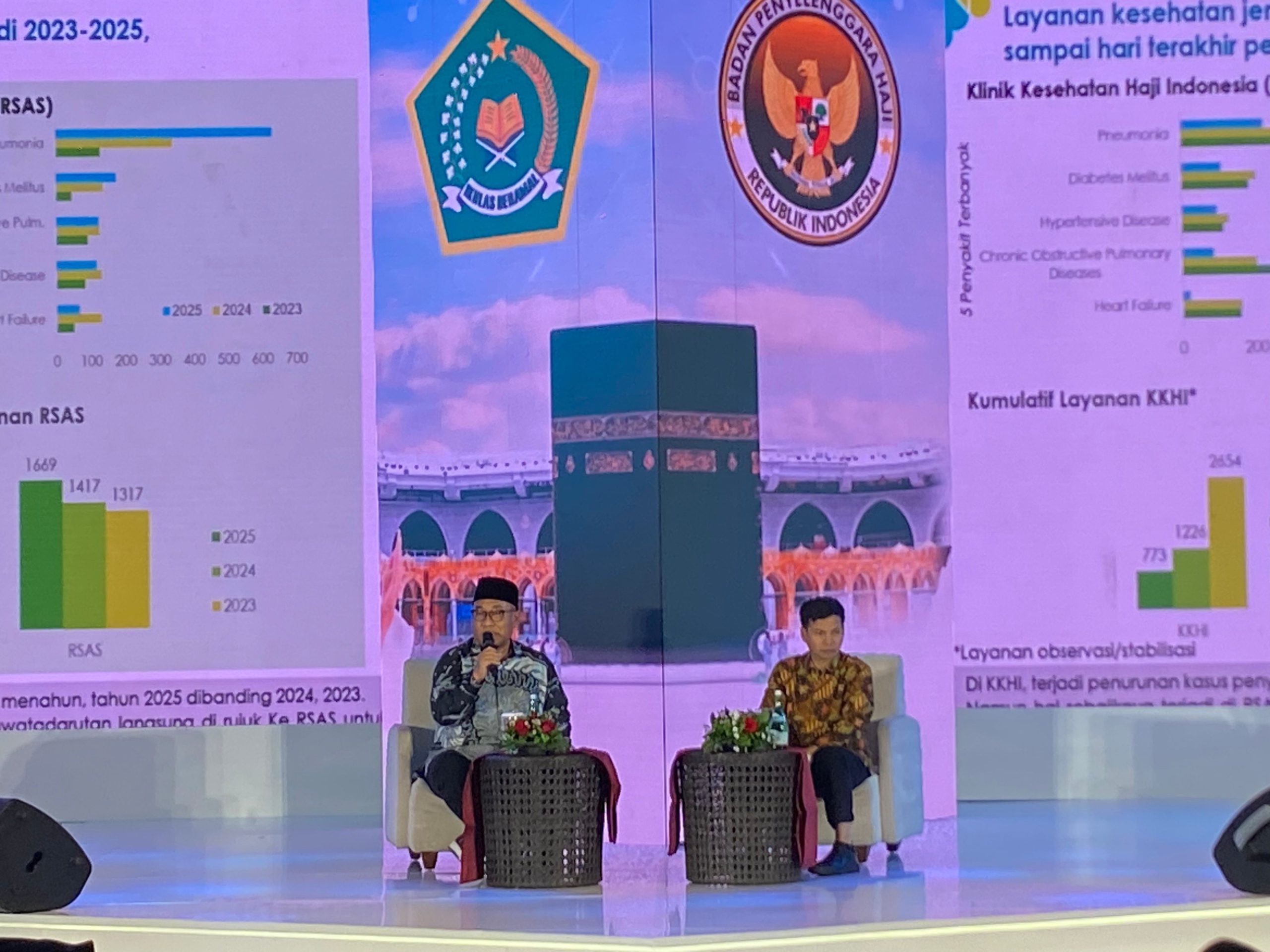 Klinik Kesehatan Haji Indonesia (KKHI) juga mencatat penurunan jumlah kasus pneumonia, penyakit paru obstruktif, dan diabetes melitus dibanding dua tahun terakhir. “Ini hasil dari penguatan tata laksana penyakit serta kesiapsiagaan tim medis kita di lapangan,” jelas Liliek.