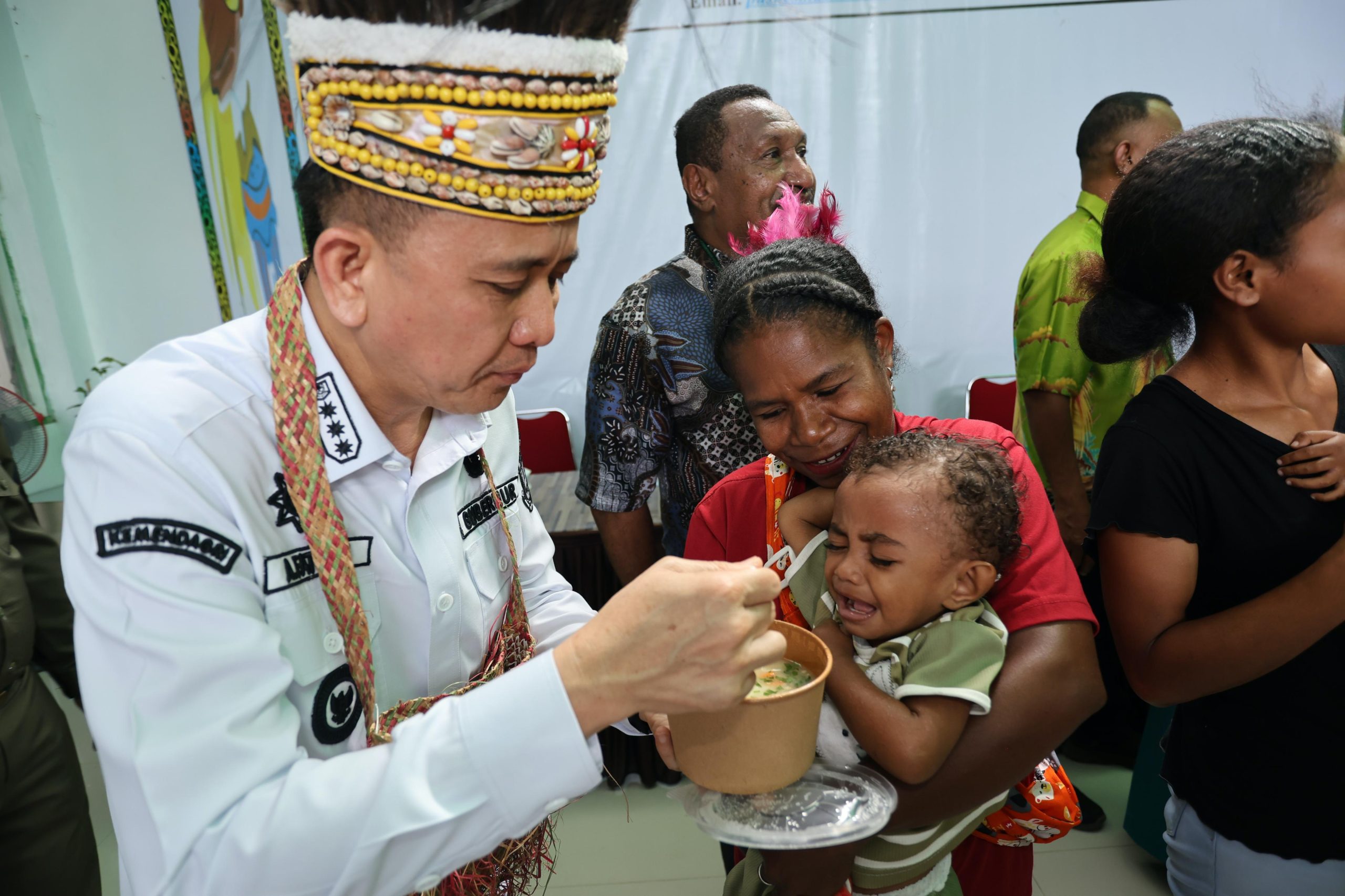 Pj Gubernur Papua Agus Fatoni Tinjau Puskesmas Kosiwo, Beri Bantuan Vitamin-Susu Anak
