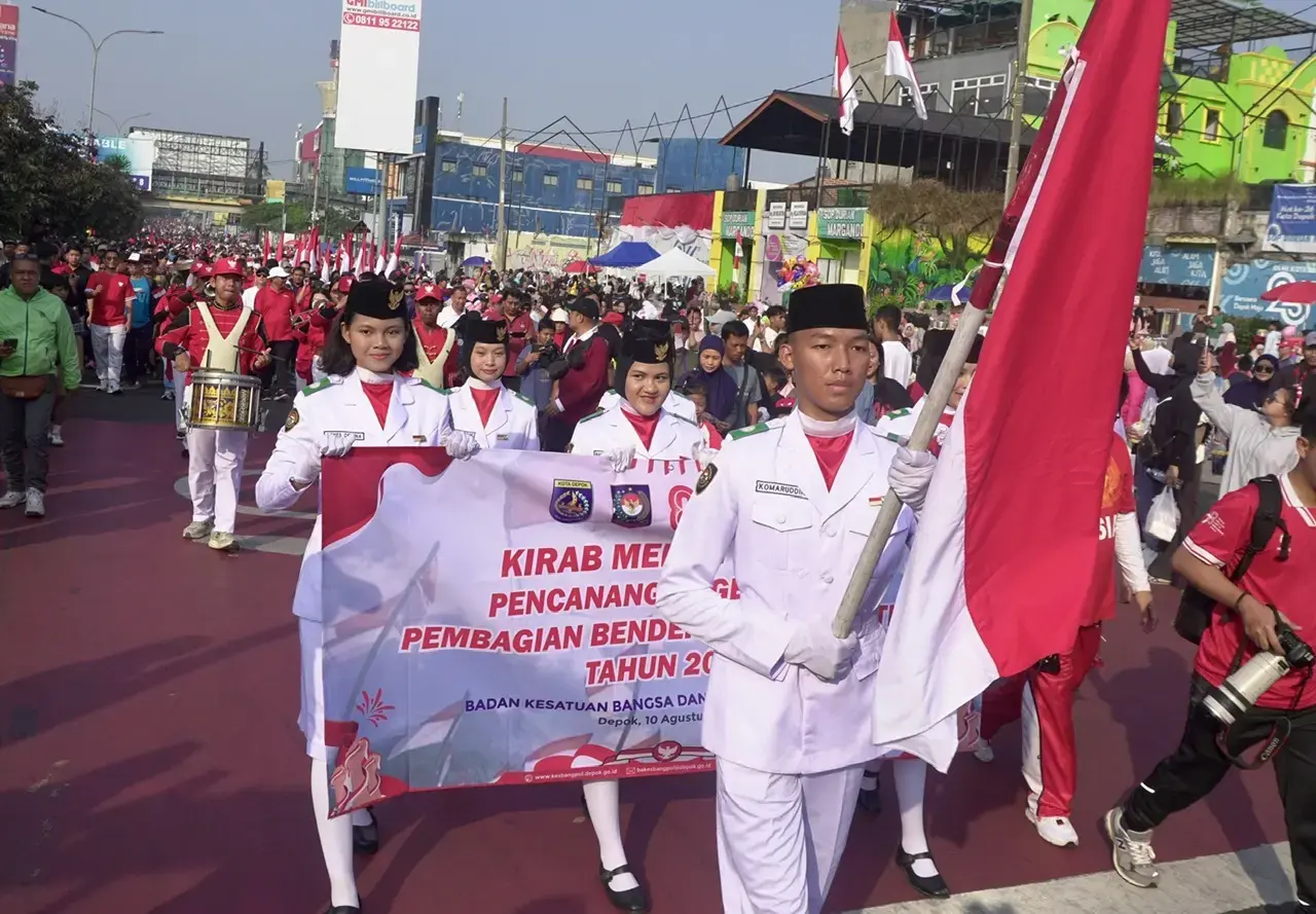 INDONESIAUPDATE.ID – Pemerintah Kota (Pemkot) Depok melalui Badan Kesatuan Bangsa dan Politik (Bakesbangpol) menggelar Kirab Bendera Merah Putih dalam rangka menyemarakkan Hari Ulang Tahun (HUT) ke-80 Republik Indonesia (RI), Minggu (10/8/25). Kegiatan berlangsung meriah di Depok Open Space dan diwarnai dengan semangat kebangsaan warga.