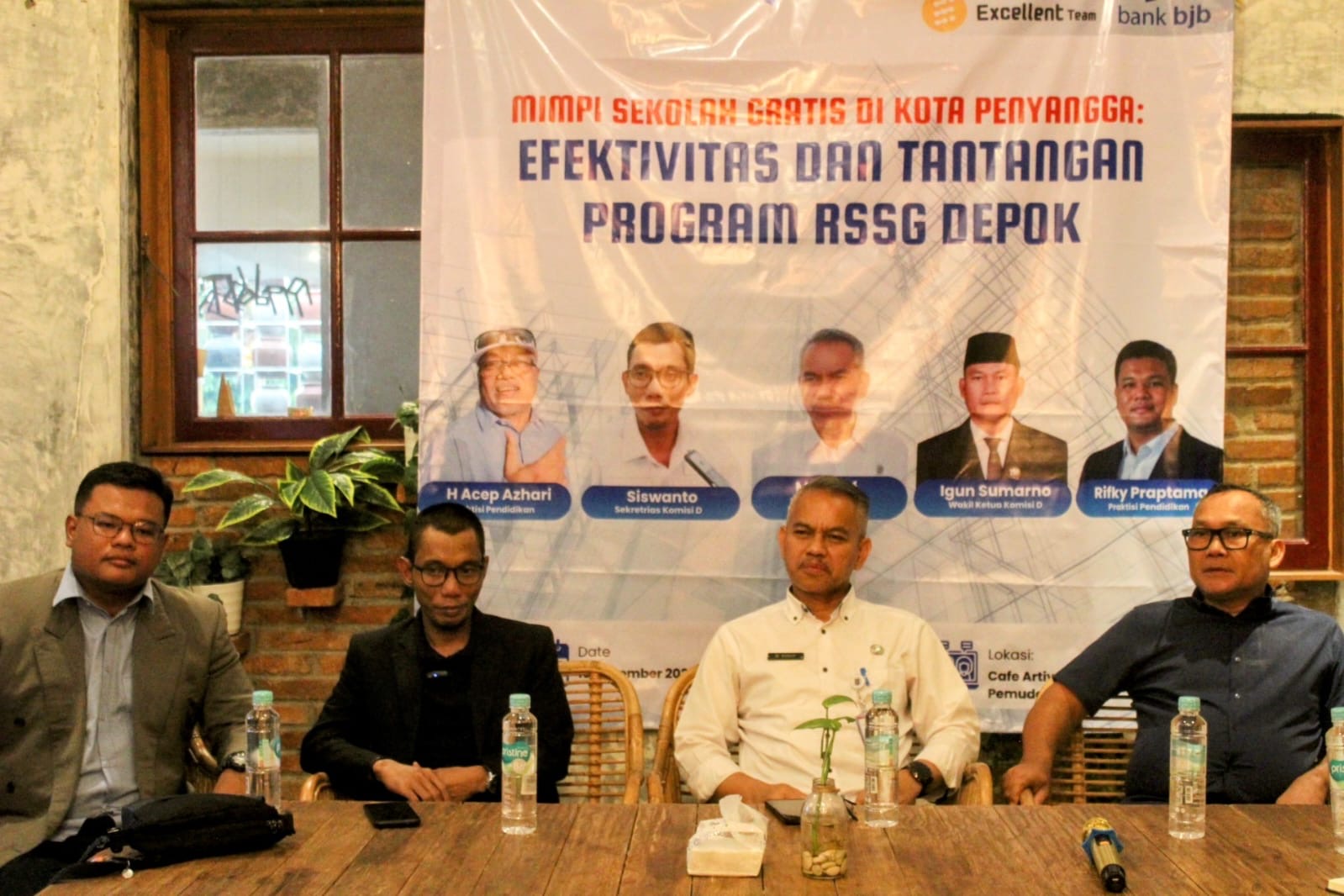 Forum diskusi publik yang mengangkat tema “Mimpi Sekolah Gratis di Kota Penyangga: Efektivitas dan Tantangan Program RSSG Depok” ini dihadiri berbagai pihak, termasuk Sekretaris Komisi D DPRD Kota Depok Siswanto, Wakil Ketua Komisi D Igun Sumarno, dan Kabid SMP Dinas Pendidikan M. Yusuf. Para guru dan mahasiswa turut aktif menyimak dan memberi masukan terkait implementasi program.