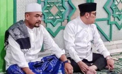 Anggota DPRD Kota Depok, Edi Masturo (kiri) bersama Camat Pancoran Mas (kanan) Mustakim saat tarling di Masjid Jami Ar-Rahman. (Foto: dok.Narasumber)